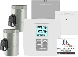 2-Zone Comfort Controls control the distribution of heating and cooling to the upstairs and downstairs zones to provide a balanced, uniformly comfortable home. Simple installation - Eliminates installing bypass, a discharge air temperature sensor, a separate 24VAC transformer, a zone panel and an upstairs thermostat, and requires only one HERS test.