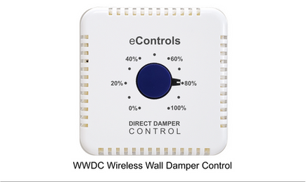 The WWDC Wireless Wall Control is used to adjust a wireless modulating damper to eliminate overheating, overcooling and conditioning an empty space.